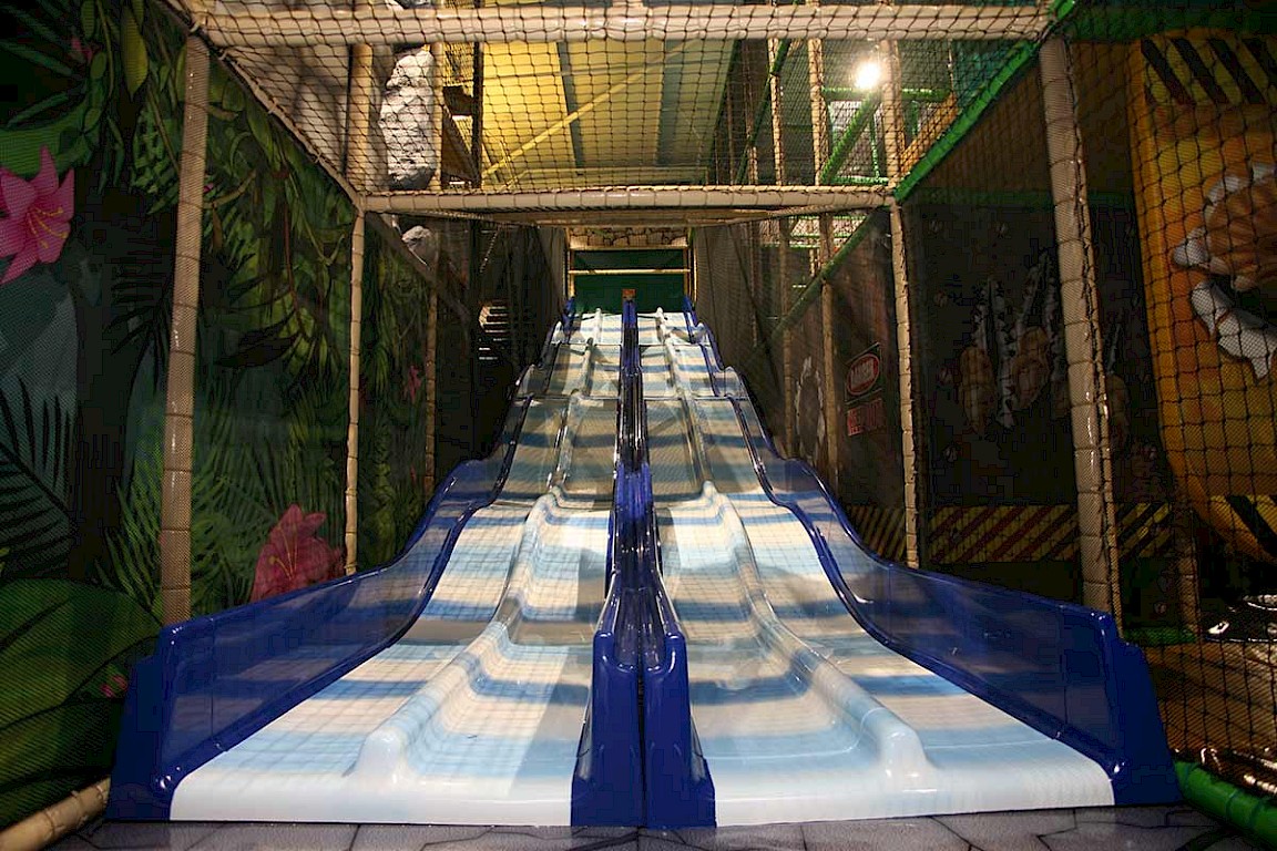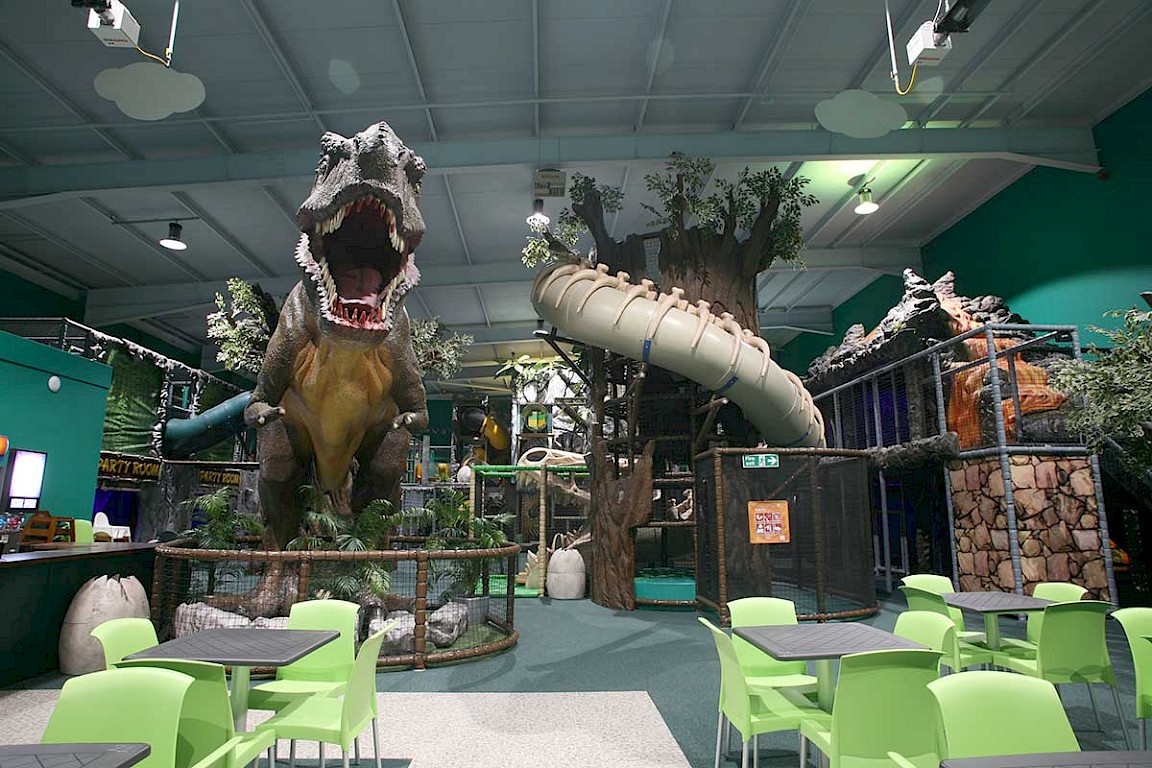 The building was separated into two distinct zones being the Jurassic themed soft play for 2-12-year olds and the Space themed trampoline park for 5 years and above. Both zones were designed in close liaison with the relevant authorities to ensure they met the exacting standards required of these facilities. Both zones have a mezzanine viewing gallery for parents or for private hire and the soft play zone also includes a food court and party rooms for hire.
