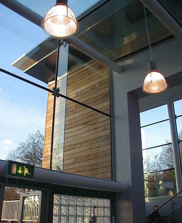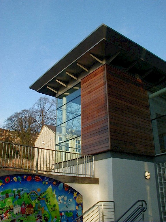 The main architectural feature was the glazed entrance hall and this was used to link the two existing school buildings which sat at different levels on the existing site. This also created a new open bright and welcoming meeting place within the school and has been used for small events, performances and gatherings, as it sits over two levels with a balcony which lends itself to being used as a viewing gallery.