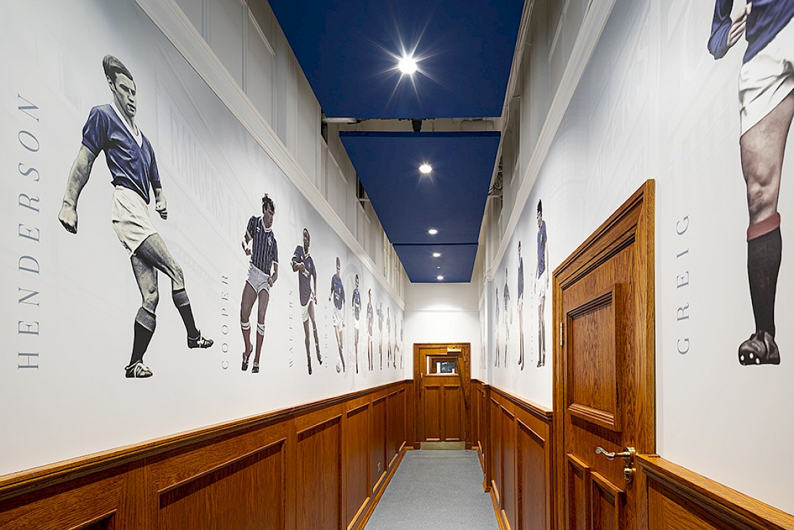 Modern vinyl graphics were then installed to chart the team’s successes and show the club legends adorning the walls of the first team area.